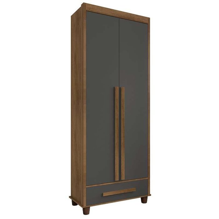 Guarda Roupa Pequeno 85cm Solteiro 2 Portas Dubai RV Móveis Cinamomo/Grafite