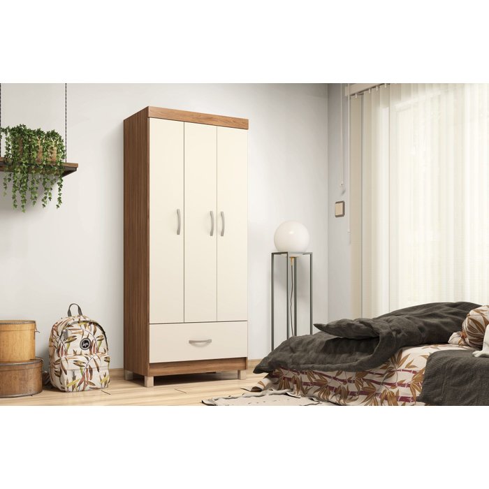 Guarda-roupa Prince 3 Portas 1 Gaveta em Mdp com Cabideiro Amêndola Touch/off White | Liberty Móveis Amêndola Touch/Off White