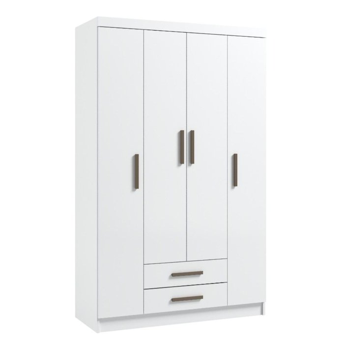 Guarda-roupa Solteiro 4 Portas 2 Gavetas Amêndoa Mdp com 10 Prateleiras Organizadoras e Corrediças T Branco