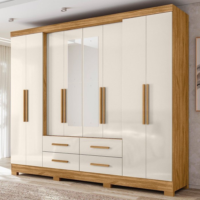 Elegância e amplitude se encontram no Guarda-Roupa San Lorenzo. Com oito portas e