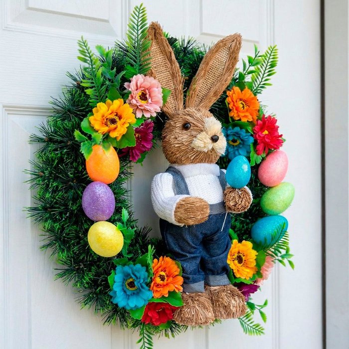 Guirlanda Páscoa Enfeite Arranjo Artesanal Coelho Ovos 40cm