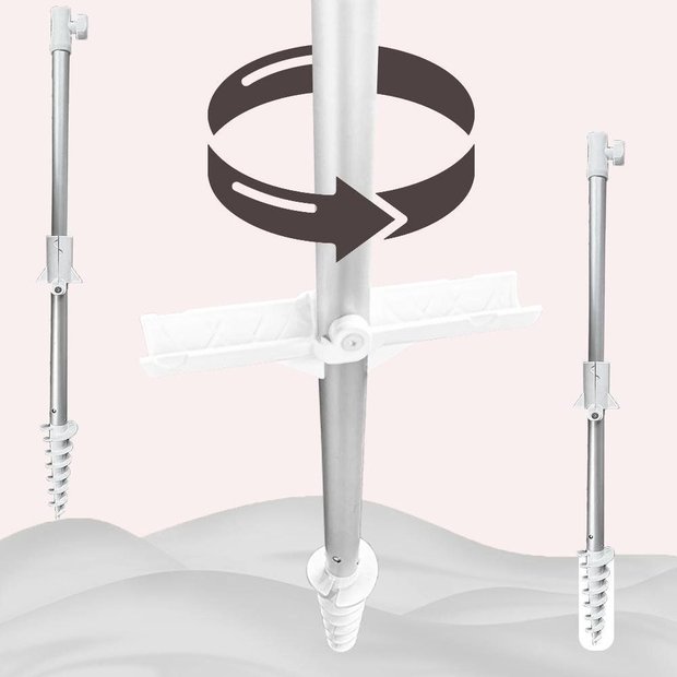 - Haste pode ser utilizada em qualquer modelo (inclusive de outras marcas) de guarda-sol com tubos de 28 mm.- Fácil fixação, coloque no chão, levante os braços laterais e com a ponta em espiral apoiada no chão, pressione girando até ficar firme ao solo, como se estivesse rosqueando a haste no chão.- DICA: Colocar um pouco de água no entorno, após fixar a haste na areia, ajuda a reforçar a fixação.