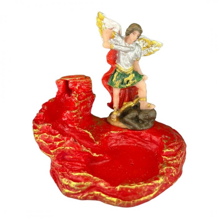 Incensário Cascata Católico em Resina - Escolha o Seu Santo:são Miguel Vermelho 10 Cm