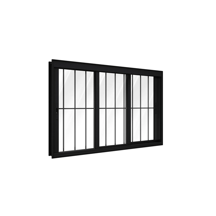 Janela 3 Folhas de Correr com Grade Alumínio Preto 100x200 Linha 25 PRETO