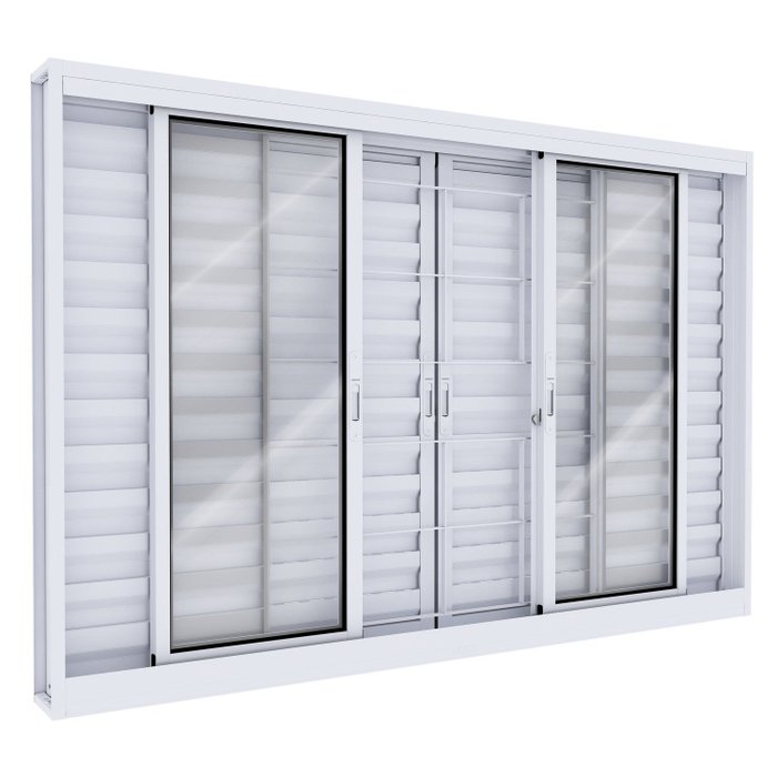Janela de Aço Veneziana 6 Folhas com Grade 100x200 Lucasa Branco