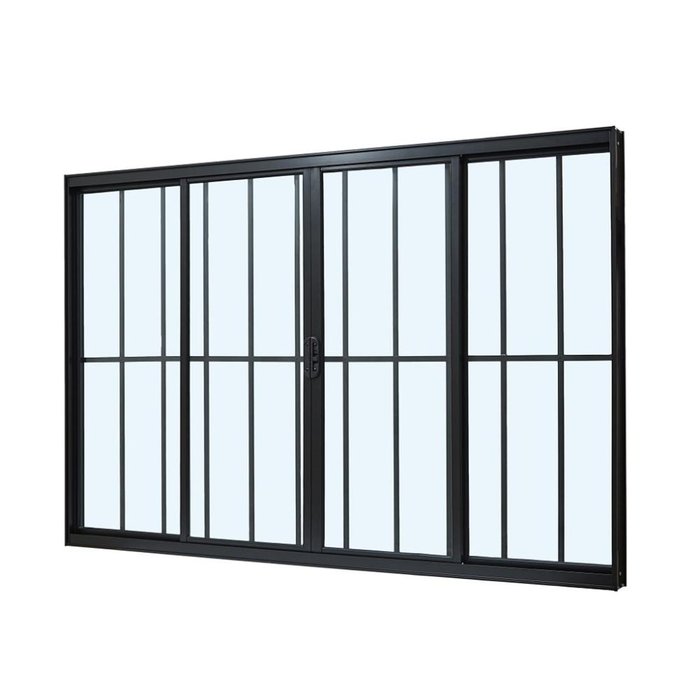 Janela de Alumínio Classic 04 Folhas com Grade Preto - 100x200 Preto
