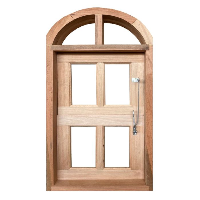 Janela de Madeira Vitro Capelinha Basculante Arco Eucalipto Bat 10cm Copa Verde Madeiras-060lx120a