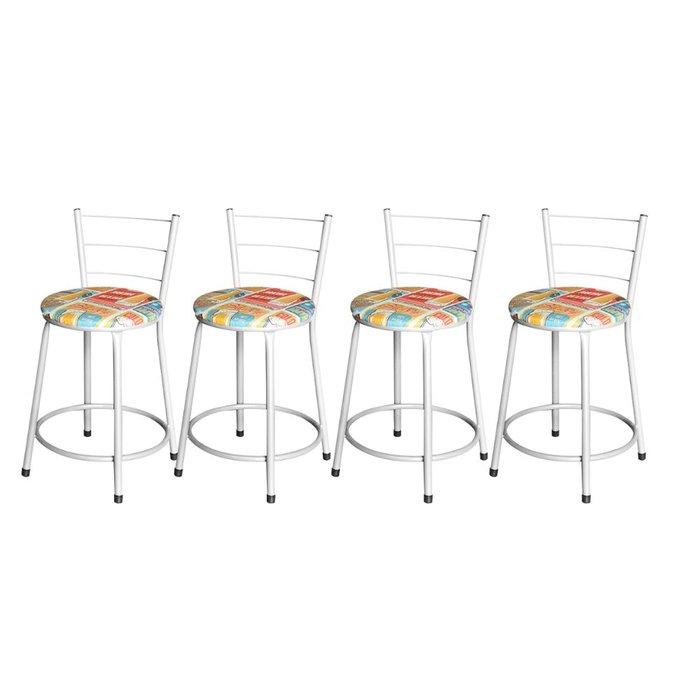 Jogo 4 Banquetas Baixa Para Cozinha Epoxi Branca Estofado Cerveja Branca