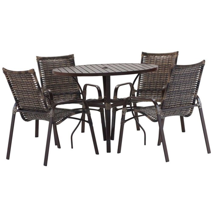 Jogo 4 Cadeiras Alumínio e Mesa Tampo Ripado 100cm para Área Jardim Varanda Piscina Emily