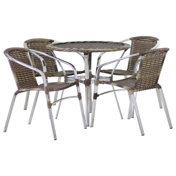 Jogo 4 Cadeiras Alumínio e Mesa Tampo Tramado Fibra Sintética para Jardim Piscina Varanda Floripa Cappuccino