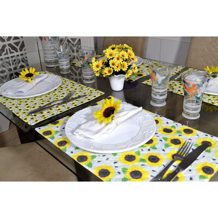 Jogo Americano Matelado Dupla Face 6 Peças - Flor de Girassol Arte & Tear Jogo Americano Dupla Face