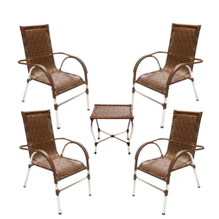 Jogo Cadeira para Jardim, Churrasqueira e Mesa de Centro Vênus em Fibra Sintética Trama