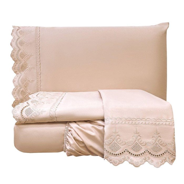 Jogo Cama Lençol Loren King Bordado Inglês Micro Percal 300 Fios 4 Peças - Rosê Rosê