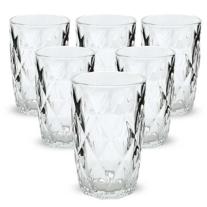 Jogo Copo Diamante Transparente Grande 370ml 6 peças