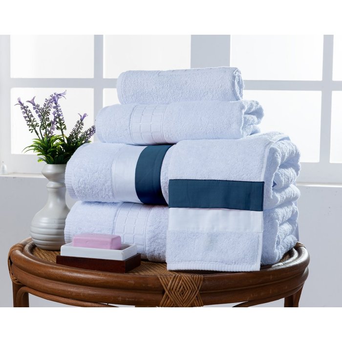 Jogo de Banho Laisa 5Pçs Tecido Egípcio 100% Algodão Branco/Azul