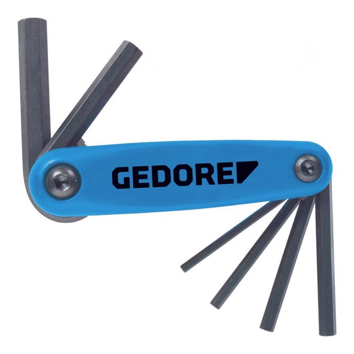 Chave em aço Gedore-Vanadium e armação em polímero na cor azul padrão Gedore. Chave com acabamento escurecido. Chave com perfil de encaixe para parafusos com sextavado interno. Grande versatilidade de uso em eletro-eletrônica e mecânica leve. Facilidade de manuseio. Jogo de bolso indispensável para o eletromecânico.