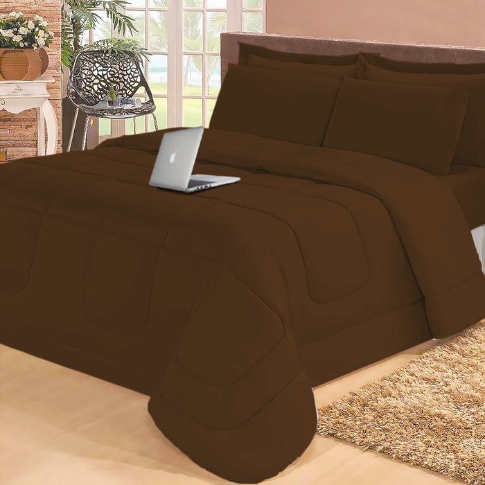Descrição Edredom com lençol, porta travesseiro e fronha ( 6 peças) À 9 anos a Casa Dona traz oportunidades incríveis ao mercado nacional com a fabricação dos melhores produtos nos seguimento de cama, mesa e banho. Esse excelente Edredom foi desenvolvido para proporcionar mais qualidade e comodidade para o seu dia a dia, tem a função de cobertor especialmente para as noites mais frias! Ele possui parte externa em Poliéster, o qual executa a função de isolante térmico, mantendo o calor gerado pelo seu corpo com toque sedoso e macio, aumentando a sensação de conforto! Além disso, devido sua característica minimalista, poderá complementar a composição de sua cama, como um cobre leito deixando-a ainda mais harmônica. A combinação de cores torna essa peça perfeita para deixar seu quarto muito mais bonito, elegante e sofisticado. Incrível, né? As peças do kit deixam sua cama completa com lençol com elástico que adere bem as laterais do seu colchão, 2 fronhas e 2 portas travesseiros, deixando sua cama igual a de hotel. Pode ser usado tanto em cama casal como queen - Marca: Casa Dona; - Modelo: Aconchego; - Enchimento: Poliéster; - Composição: 100% Poliéster; Medidas: -Edredom: 2,40m x 2,20m; -Porta Travesseiros: 70cm x 50cm; -Lençol Inferior c/ Elástico p/ Colchão de: 1,98m x 1,58m x 30cm; -Fronhas 70cm x 50cm; - Peso: 2,300 kg; -Gramatura: 85g/m² Itens Inclusos 01 Edredom, 02 Porta travesseiros, 01 Lençol Inferior c/ Elástico p/ Colchão, 02 Fronhas LAVAGEM E CONSERVAÇÃO: CUIDADOS NA LAVAGEM E CONSERVAÇÃO: - Lave em máquina doméstica no ?Ciclo Delicado? NÃO UTILIZE O MODULO EDREDOM - Acomode a peça cuidadosamente ao redor do agitador da máquina para evitar rasgos no tecido e embolamento da manta interna durante a centrifugação. - Coloque o sabão líquido neutro no recipiente adequado da máquina, na quantidade indicada pelo fabricante. Dissolva o sabão antes de mergulhar a peça. - Não use água sanitária e nem amaciante. - Evite lavagem a seco. - Não torça o edredom. - Seque à sombra. O melhor processo de secagem é o de estufa, feito em lavanderias especializadas. - Evite passar o edredom. - Não guarde o edredom em embalagens plásticas para evitar fungos. As fotos são meramente ilustrativas. As cores podem variar de acordo com cada monitor .