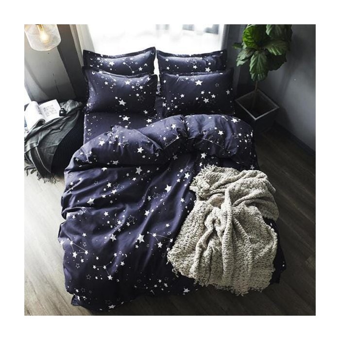 Jogo De Cama Casal King Completo 6 Peças Com Edredom Star preto