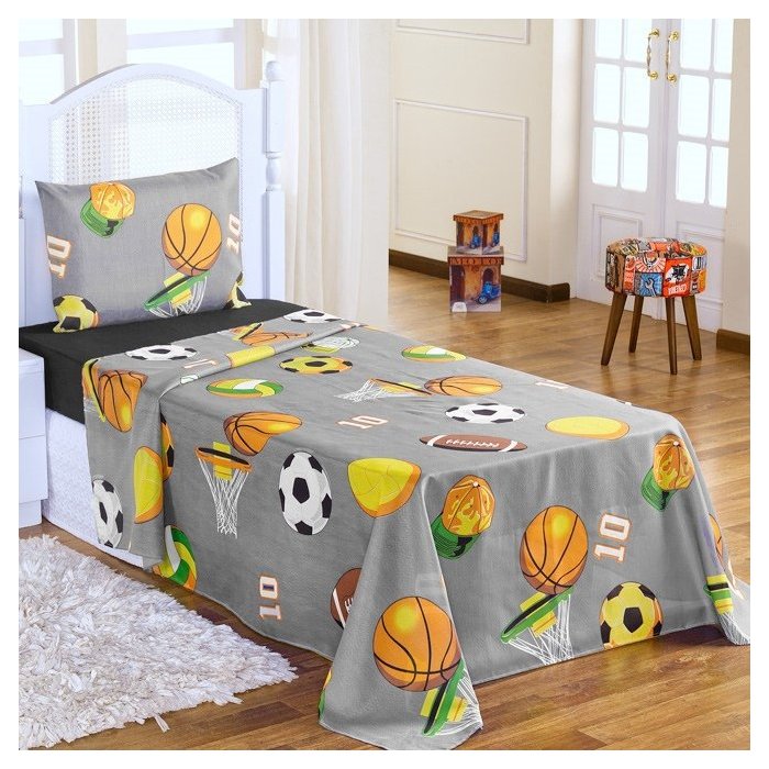 Jogo De Cama Lençol Solteiro Infantil 3 Pecas - Futebol Cinza Enxovais Aquarela