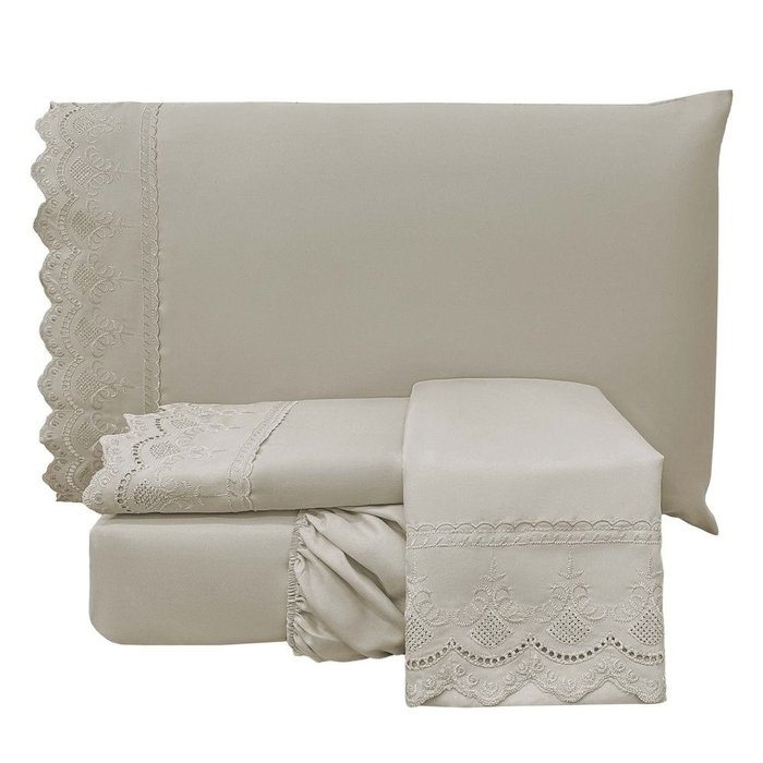 Jogo de Lençol King Bordado Inglês Lauren 3 Peças Fendi
