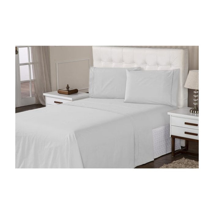 Jogo de Lençol Percal 400 Fios Suave Feito Algodão Queen 3 Peças Branco Casa Dona