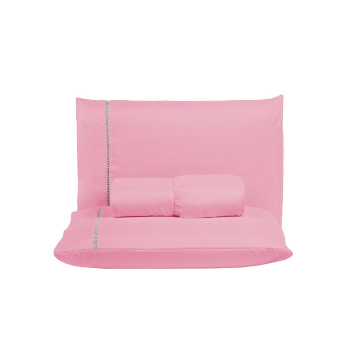 Jogo de Lençol Solteiro 400 Fios Detalhe em Ponto Palito 2 Peças Beliche Cama Box Padrão:rose