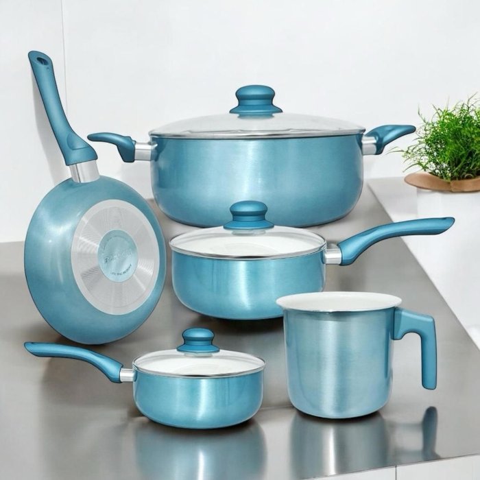 Jogo de Panelas Antiaderente Revestimento Cerâmico Genebra azul