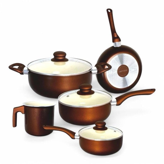 Jogo de Panelas Antiaderente Revestimento Cerâmico Roma Marrom