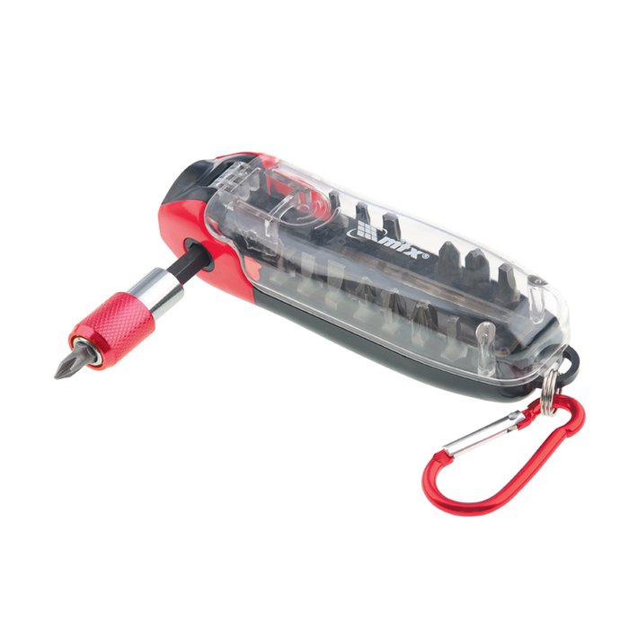 O jogo de bits com adaptador magnético da MTX é produzido de aço cromo vanádio que combina alta dureza e resistência ao desgaste. Possui um adaptador magnético com um anel de bloqueio adicional fornece uma mudança rápida e pedaços de fixação confiáveis no suporte. Devido à possibilidade de unir o adaptador magnético. Os transformadores de boxe em ângulos diferentes, este conjunto pode ser usado como uma chave de fenda. Bits de 25 mm - 14 pcs. Bits 50 mm - 2 pcs. Adaptador magnética - 1 pc. Mosquetão.