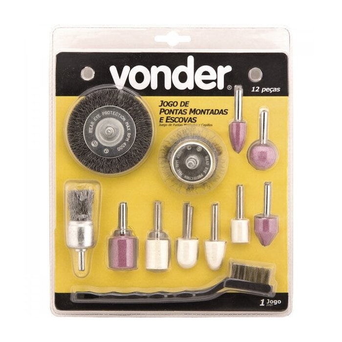 Jogo de pontas montadas e escova com 12 peças Vonder