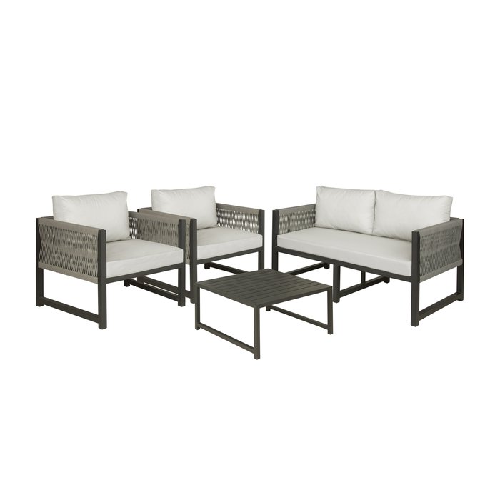 Jogo de Sofás 4 Lugares de Corda Náutica e Alumínio com Pintura Eletrostática e Tecido Impermeável Preto com cinza