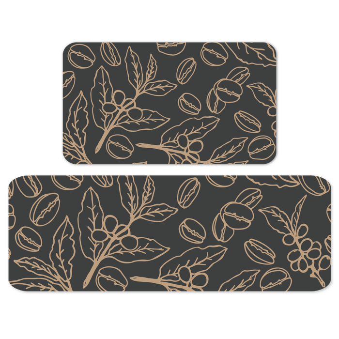 Jogo de Tapetes de Cozinha Galhos de Café Antiderrapante Cinza
