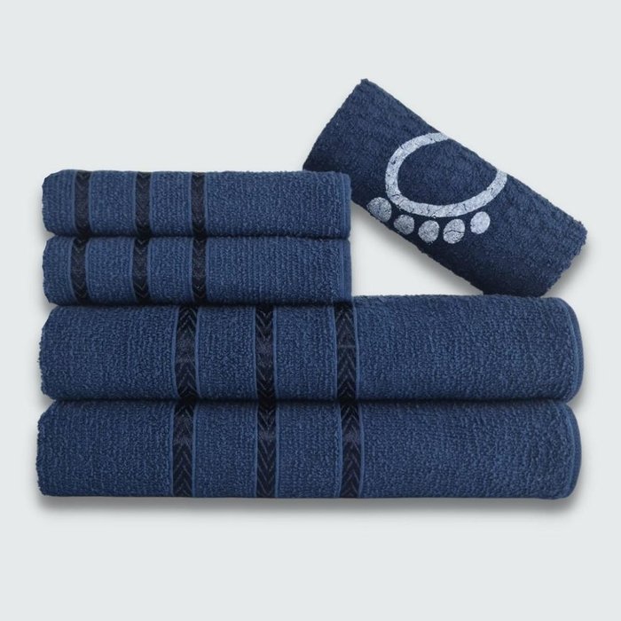 Jogo de Toalha Banho 5 Peças Verona 100% Algodão Azul Marinho Azul Marinho