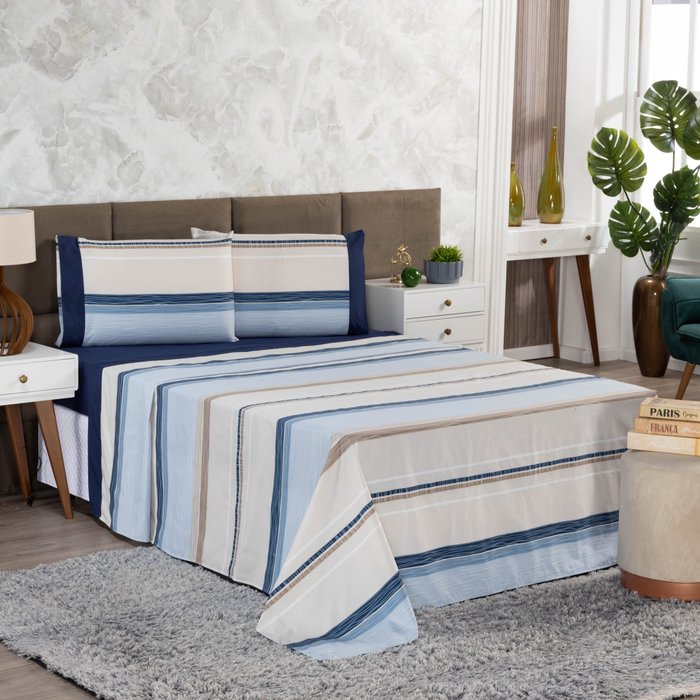 Jogo Lençol Casal Micropercal 457208/azul 04 Peças AZUL/BEGE