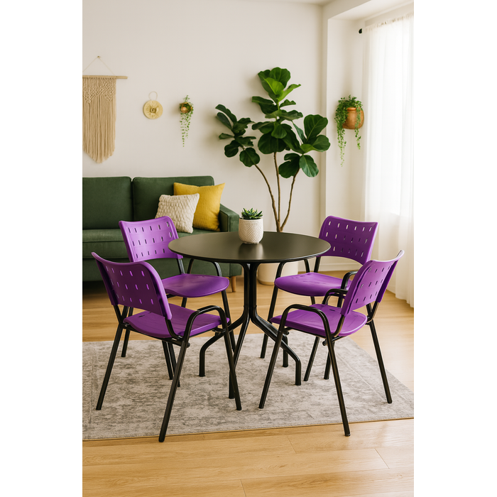 Jogo Mesa Redonda para Restaurante Comércio com 4 Cadeiras Iso Roxa Base Preta Ecomhome Roxo/Preto
