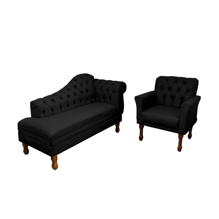 Jogo Sofá Divâ + 1 Poltronas Decorativa para Sala de Espera Preto