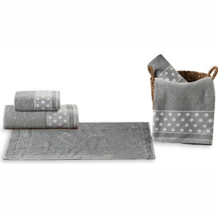 O kit é composto por 5 peças: 2 toalhas de banho gigantes, 2 de rosto e 1 toalha de piso.