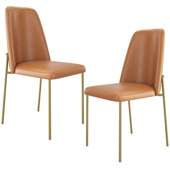Kit 02 Cadeiras Decorativa Estofada para Sala de Jantar Dourada Bella L02 Couríssimo Whisky - Lyam D