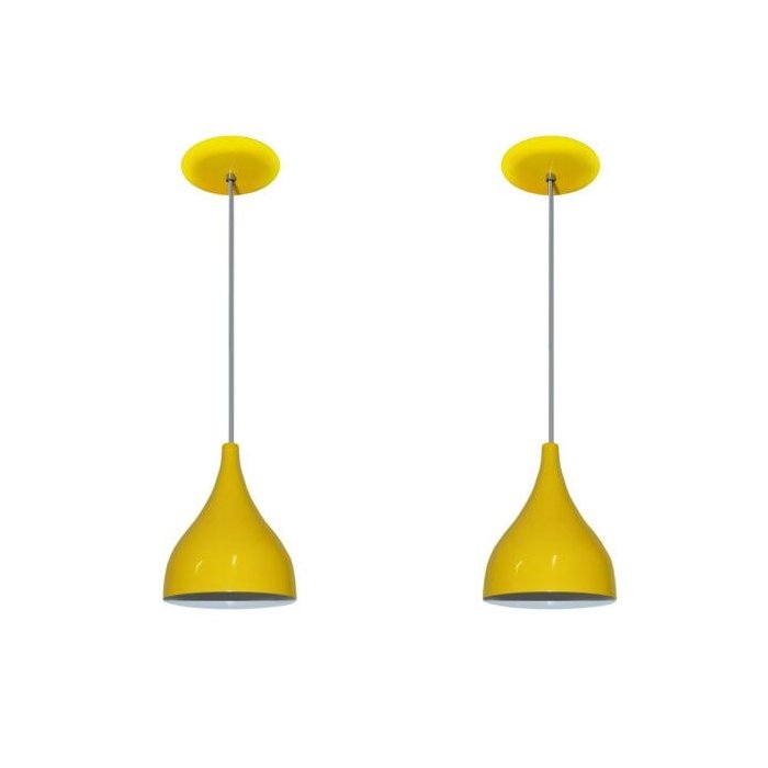 Kit 02 Lustres Luminarias Pendentes - Modelo Funil - Amarelo