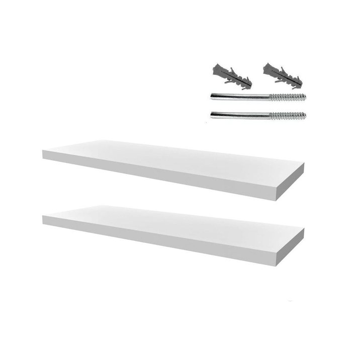 Kit 02 Prateleiras em Mdf 15mm Branco 25x80cm com Suporte Fixação