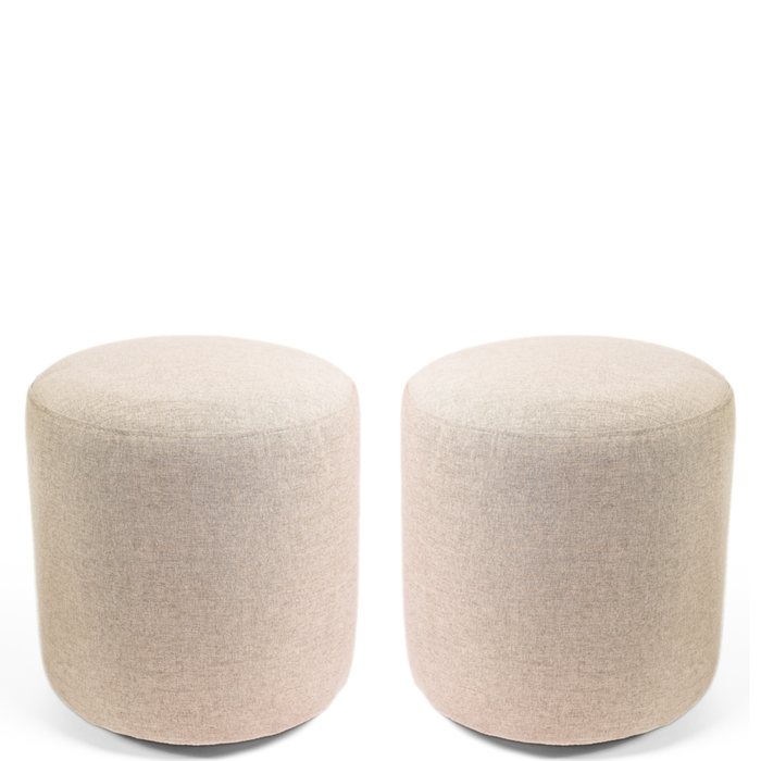 Kit 02 Puff Perse Decorativo Tecido Linho Banqueta Redondo Cru