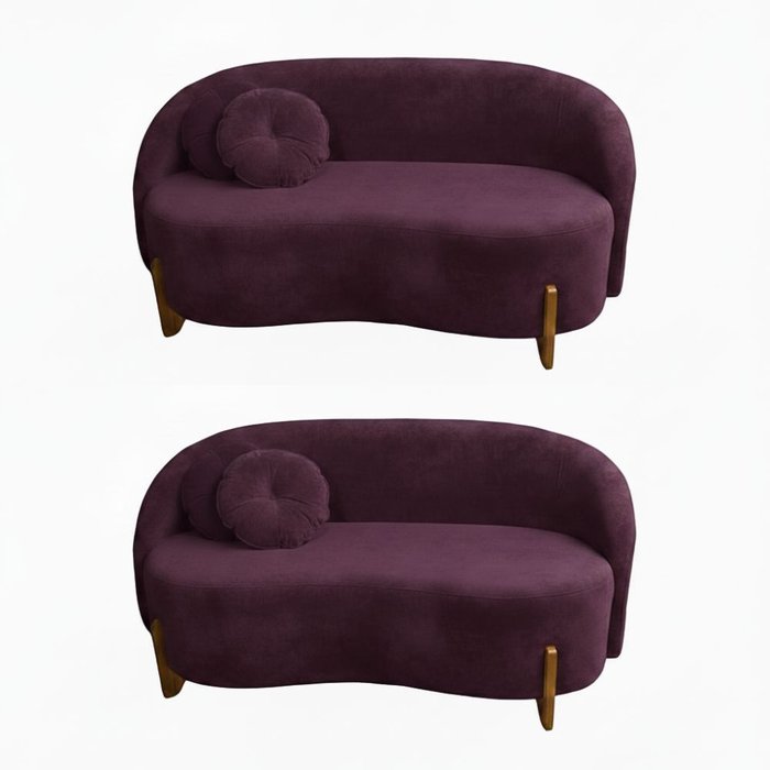 Kit 02 Sofás Orgânicos 2 Lugares C/2 Almofadas Curvo Sala Recepção Amsterdã Veludo Roxo - Montanari'