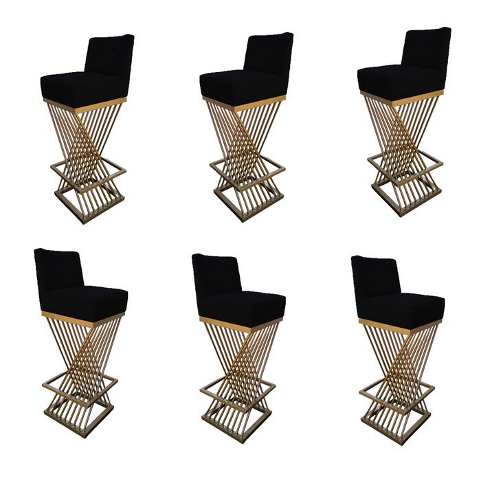 Kit 06 Banquetas Luma Base de Ferro Sued Preto - D'classe Decor