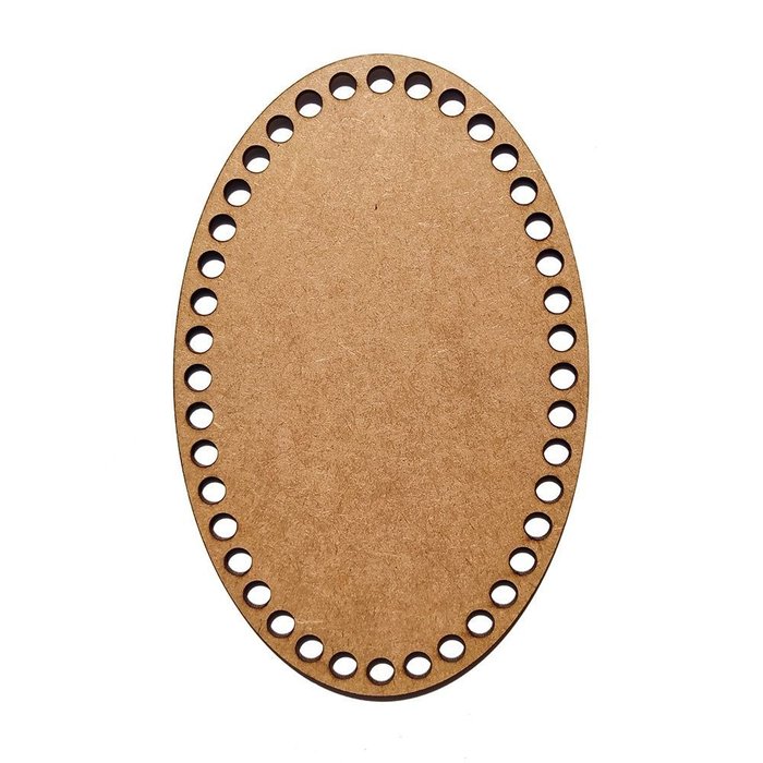 Base de MDF Cru Oval para Cesto de Fio de Malha (Crochê) Contém 10 Bases em MDF OVAL 15x25 cmEspecificações do Produto: Medida: Oval 15x25 cmEspessura do MDF: 2.8mm Diâmetro de cada buraco: 8mm Cor : Cru Produto em madeira MDF crua, de excelente qualidade e com ótimo acabamento no Corte no Laser.
