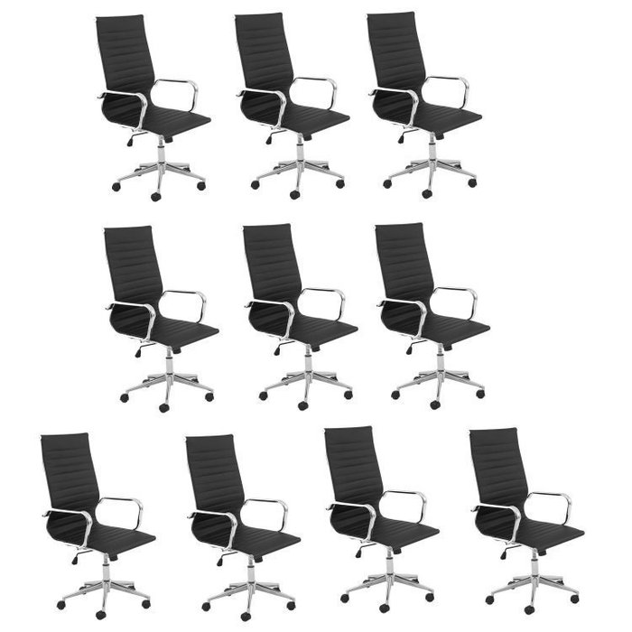 Kit 10 Cadeiras de Escritório Presidente Esteirinha em Corino Sevilha Preto