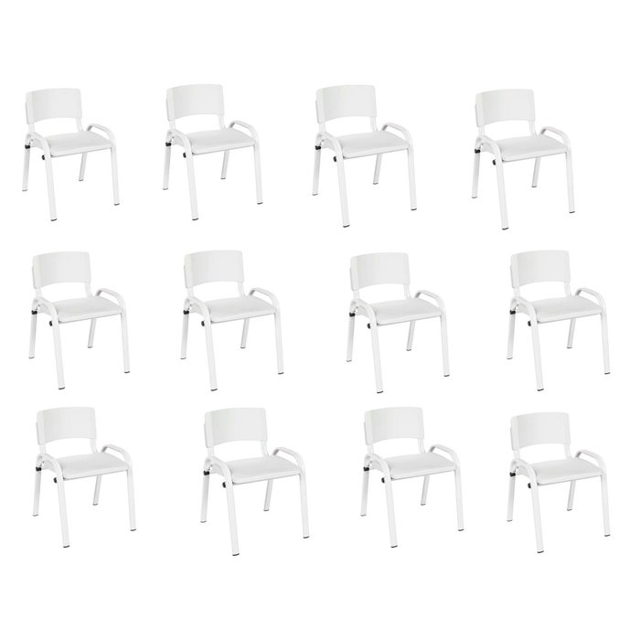 Kit 12 Cadeiras Infantil Iso, Escola, Base Branca-branco