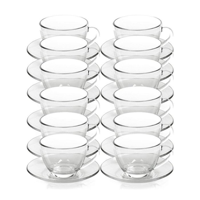 Kit 12 Xícaras De Chá Vidro Com Pires Em Casa Tem 230ml
