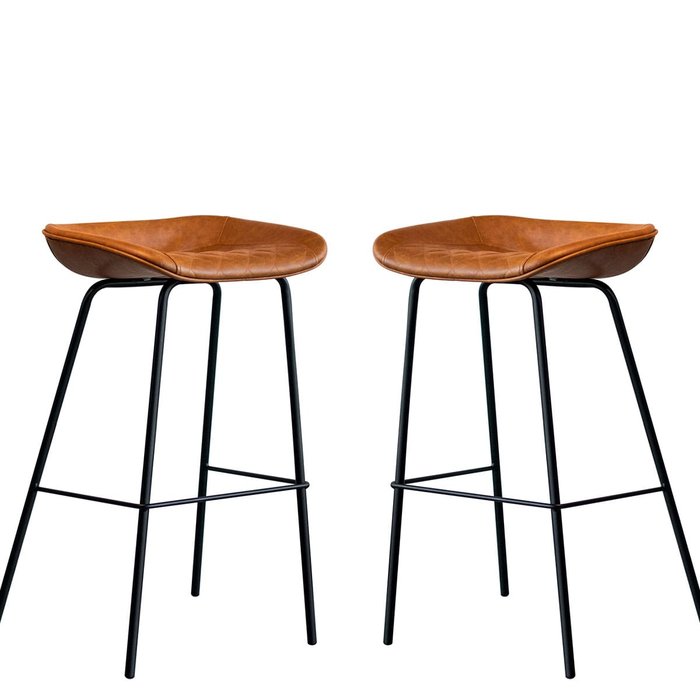 Kit 2 Banqueta Industrial Alta com Assento Estofado Marrom Leather Edecasamoveis