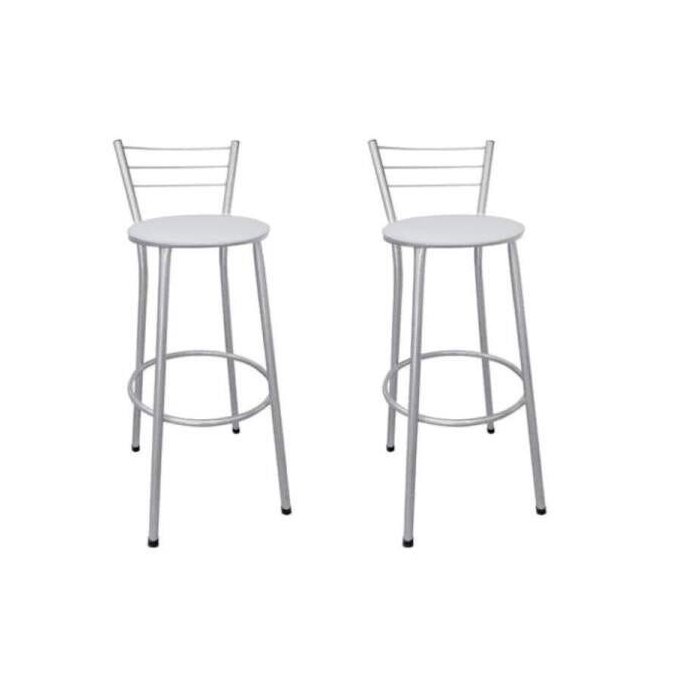 Kit 2 Banquetas Alta Prata com Assento Branco Fortmix