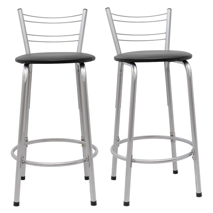 Kit 2 Banquetas para Balcão Flórida Prata 60cm Cozinha Gourmet Bistrô Bancada Piscina Área de Lazer Assento Preto